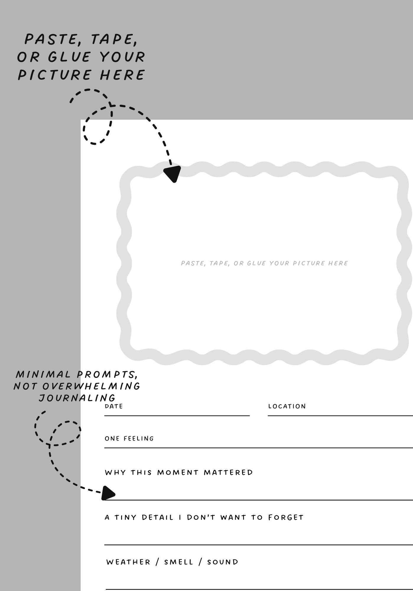 - Paste, tape, or glue a photo, ticket, postcard, or memory here.